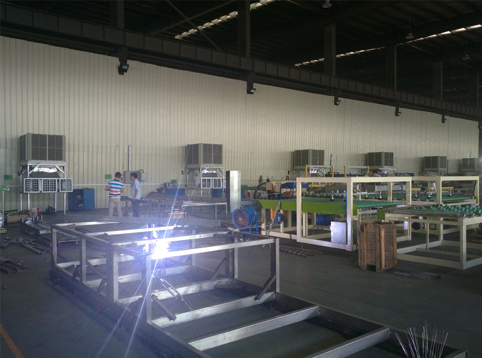 3、環保空調降溫迅速,采用大風量低噪音風葉,每臺機送風量大約18000m3/h,可迅速的排出車間內的熱空氣,降低車間內的溫度