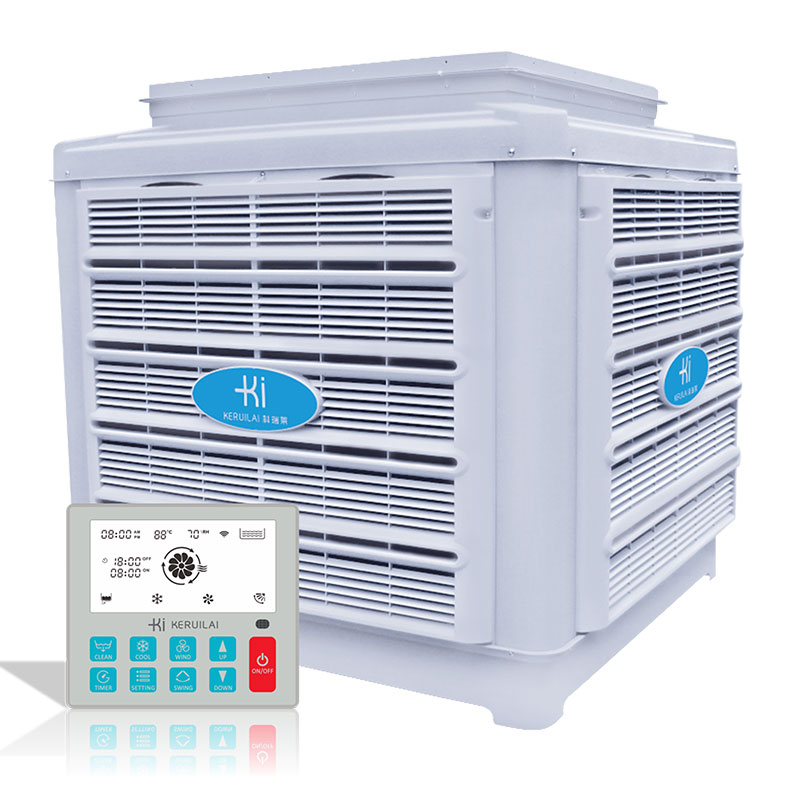 “科瑞萊”蒸發式冷氣機的核心降溫部件是“高效蒸發式濕簾”——純天然多層波紋植物纖維疊合物。根據“水蒸發吸收熱量,蒸發面積影響蒸發效率”這一自然物理現象,通過風機往室內送風,室外的新鮮空氣流經浸水的濕簾后空氣與水份充分接觸同時吸收空氣中的顯熱,從而達到降溫、換氣、除塵、增加室內空氣含氧量的目的,特別適用于高溫車間及人群密集的工作場所。